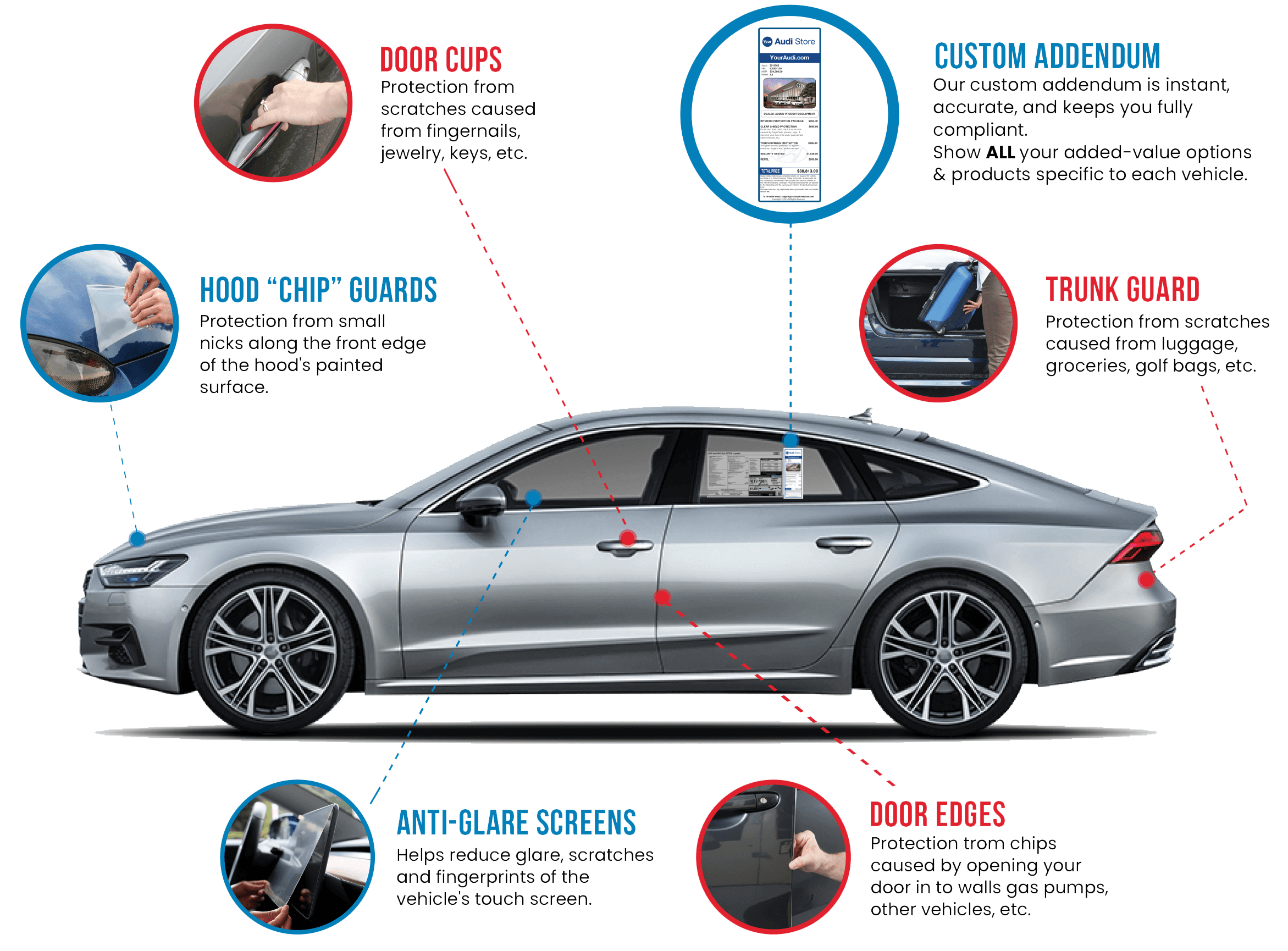 - Complimentary custom addendums printed on-site as vehicles drop daily. at no charge.